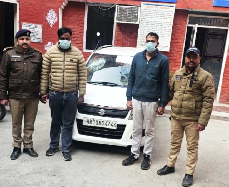 गौरतलब है कि बीते दिन शनिवार को वादी प्रताप सिंह द्वारा कोतवाली नगर हरिद्वार में दी गई तहरीर में बताया गया कि वैगनआर कार चालक ने पार्किंग शुल्क दिए बिना बैरियर तोड़ते हुए फरार होने का प्रयास किया। जब पार्किंग मैनेजर सहदेव कुमार ने वाहन रोकना चाहा तो चालक ने जान से मारने की नीयत से उन्हें टक्कर मार दी और कुचलते हुए मौके से फरार हो गया। गंभीर रूप से घायल सहदेव कुमार की उपचार के लिए हायर सेंटर ले जाते समय रास्ते में मौत हो गई। गिरफ्तार आरोपी विशाल पुत्र बिनोद व सूरज पुत्र चन्द्र सिंह, निवासीग, जिला सोनीपत (हरियाणा) के रहने वाले है। जिनके कब्जे से घटना में प्रयुक्त वैगनआर कार बरामद की गई है। पुलिस टीम में प्रभारी निरीक्षक: रितेश शाह, वरिष्ठ उपनिरीक्षक: नन्द किशोर ग्वाड़ी, उपनिरीक्षक: चरण सिंह, अपर उपनिरीक्षक: सन्दीप वर्मा, कांस्टेबल: राकेश, पवन व दिनेश शामिल रहे।