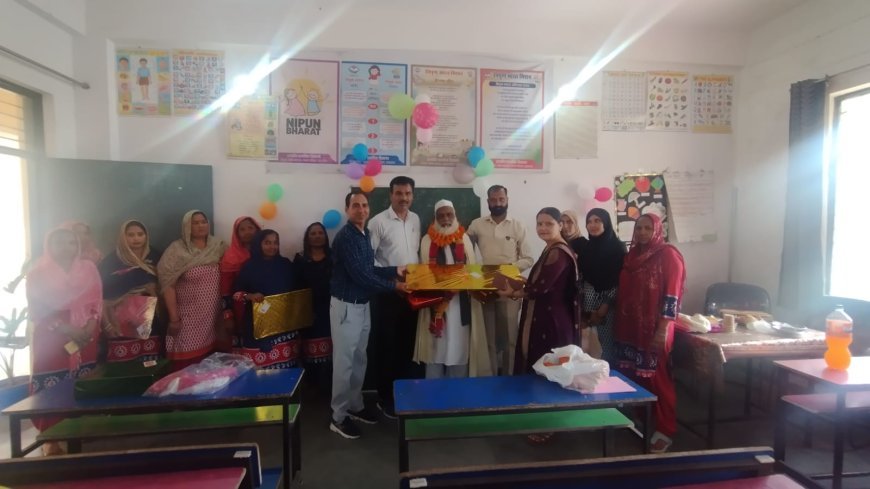 पीरपुरा प्राथमिक विद्यालय में भावुक माहौल के बीच प्रधानाचार्य मोहम्मद इकराम को दी गई विदाई