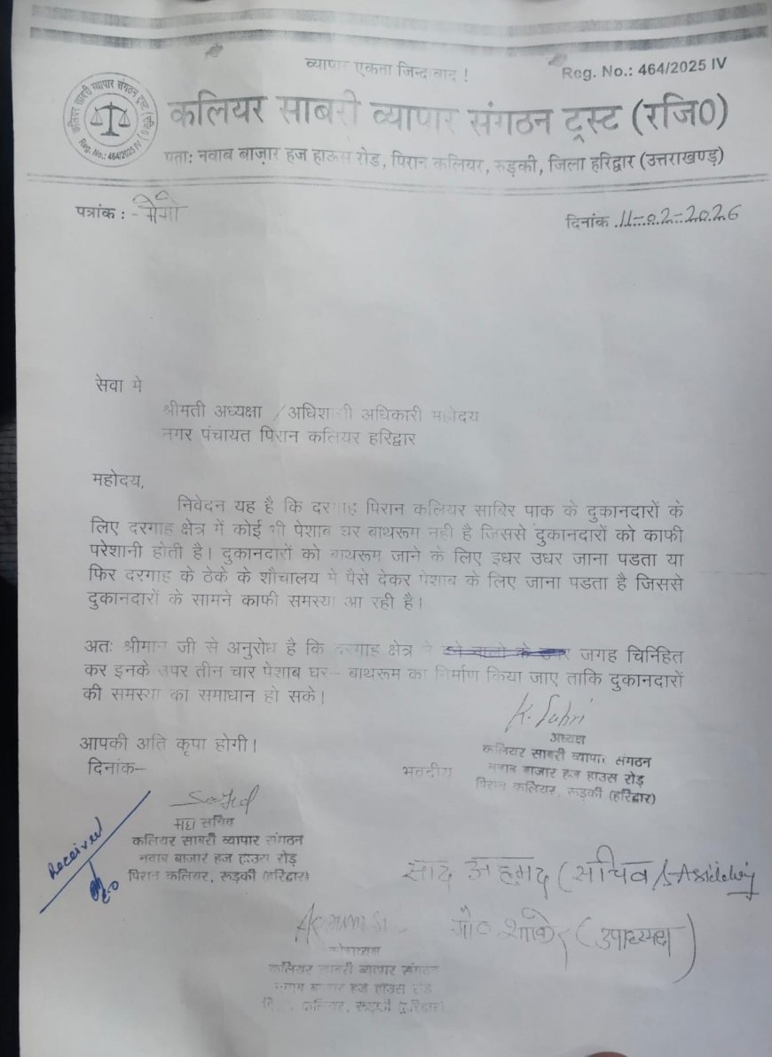 पिरान कलियर : दरगाह पिरान कलियर क्षेत्र में स्थित दुकानदारों को लंबे समय से एक गंभीर समस्या का सामना करना पड़ रहा है। दरगाह परिसर में दुकानों के आसपास कोई भी सार्वजनिक शौचालय (पेशाब घर/बाथरूम) की व्यवस्था नहीं है, जिससे दुकानदारों और श्रद्धालुओं दोनों को भारी परेशानी उठानी पड़ रही है।
