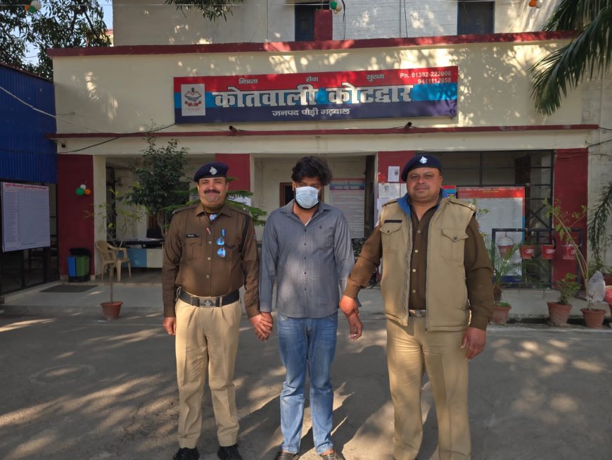 एसएसआई अनिल चौहान के नेतृत्व में एक पुलिस टीम ने आरोप पिता को गिरफ्तार कर लिया। कोतवाली प्रभारी प्रदीप नेगी ने बताया कि आरोपी पिता कौड़िया, नजीबाबाद रोड, कोटद्वार (मूल निवासी- ग्राम परसिया, भगवती पोस्ट वालेपुर, थाना- जिला देवरिया उत्तर प्रदेश) को गिरफ्तार कर लिया गया है।