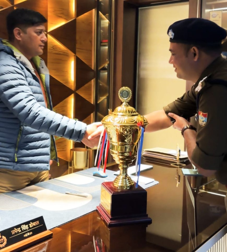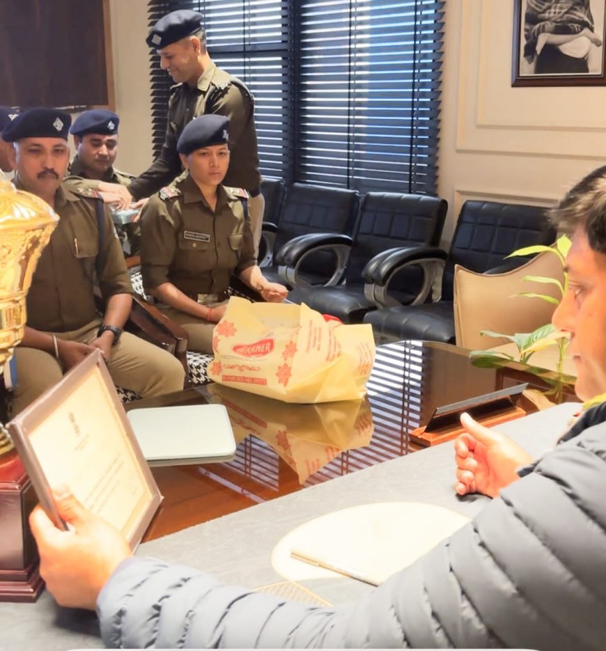 हरिद्वार। गणतंत्र दिवस के पावन अवसर पर उत्तराखण्ड की सर्वश्रेष्ठ कोतवाली का गौरव हासिल करने वाली कोतवाली ज्वालापुर की टीम सम्मान ट्रॉफी के साथ वरिष्ठ पुलिस अधीक्षक हरिद्वार प्रमेन्द्र सिंह डोबाल के कैंप कार्यालय पहुँची। इस उपलब्धि पर पूरे पुलिस महकमे में उत्साह, गर्व और उल्लास का माहौल देखने को मिला।